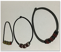 ちょっと手を加えるだけで、素敵な作品が作れます。ウェアーを作るのと同じ素材で、カバンやアクセサリーなども作れば一層楽しみが増します。 |